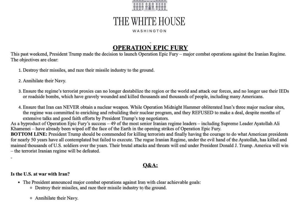 Бела кућа је званично објавила да акције против Ирана нису рат, већ велика војна операција (ВВО), и навела је њене циљеве: